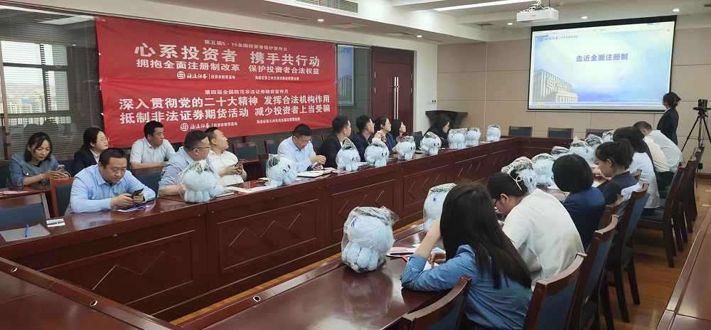 为做好全面实行股票发行注册制投资者教育保护工作,维护广大投资者合法权益,引导投资者客观看待和理解全面实行注册制的意义和作用,理性参与投资。海通证券兰州东岗东路营业部走进甘肃盛达集团有限公司,结合防范非法证券活动组织开展“全面注册制,改革向未来”主题投资者教育专项活动。